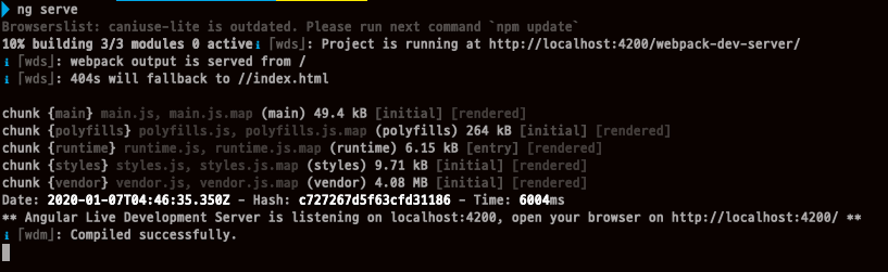 LiveReload를 지원하는 내장 개발 서버를 사용한 Angular 프로젝트 실행