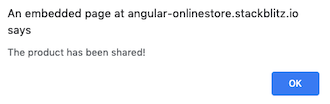 window.alert('The product has been shared!');